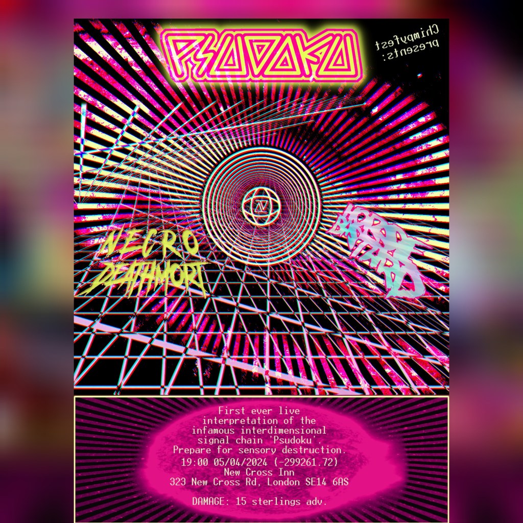 A new live band consisting of 4 musicians from the Stavanger region of Norway plays Psudoku material using two guitars, bass, vocals, electronics and acoustic drums. This live version of Psudoku realizes its studio equivalent in a densely concentrated maximalist live manifestation causing relentless musical information overload.